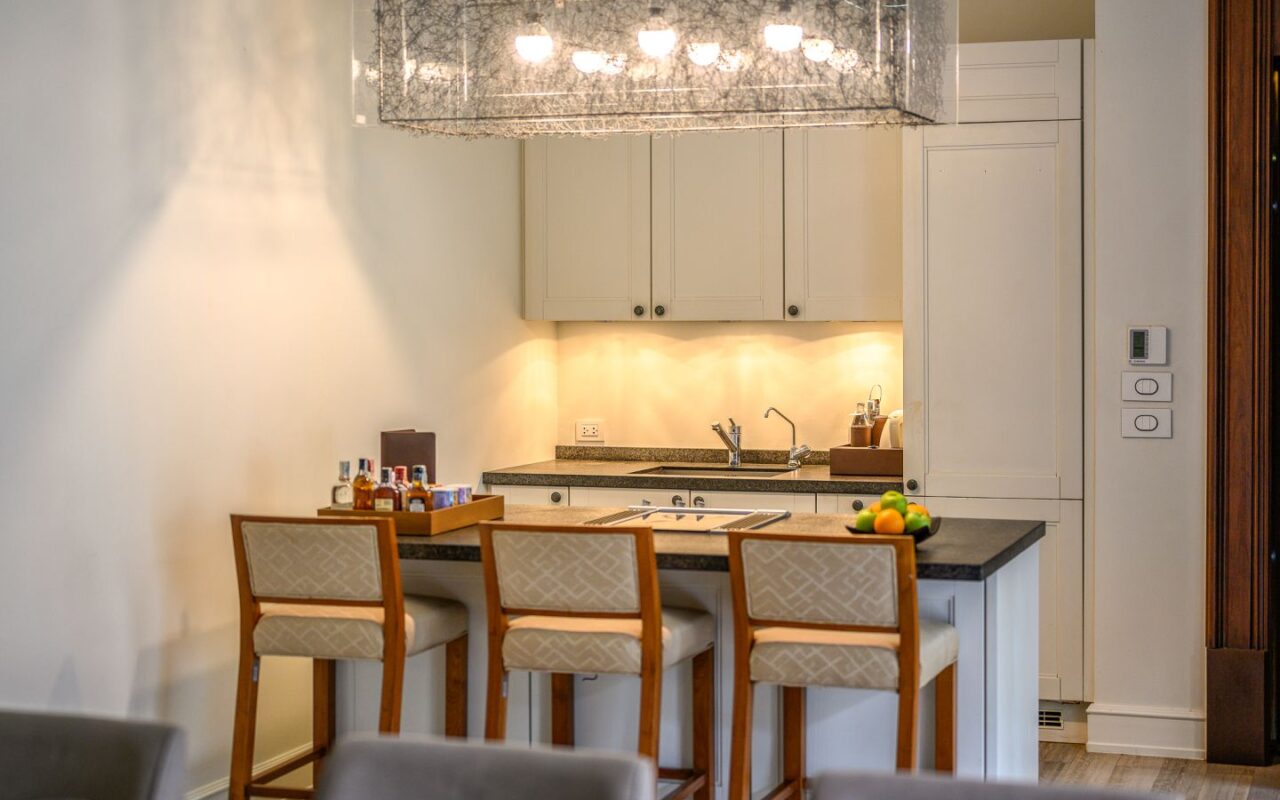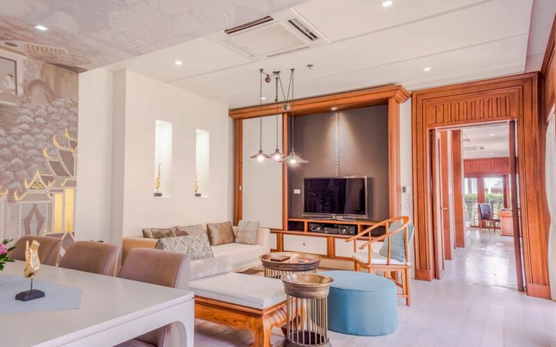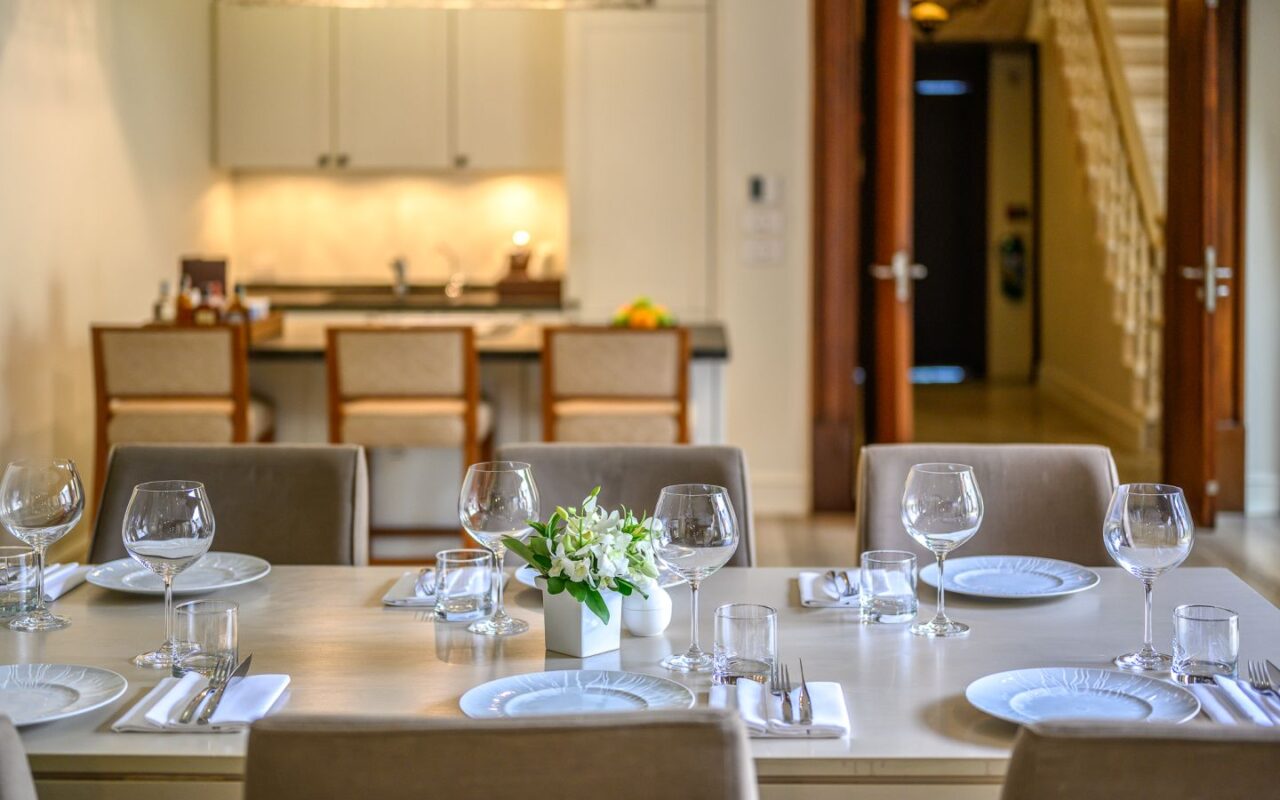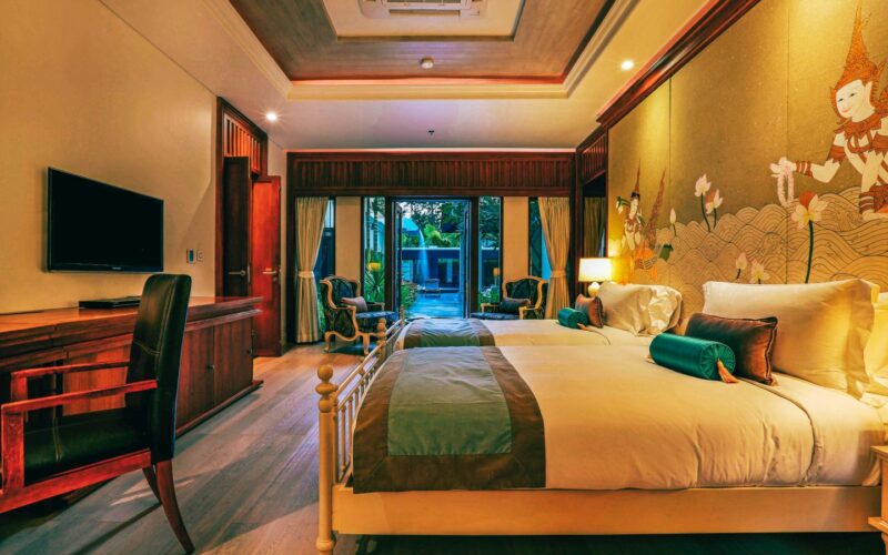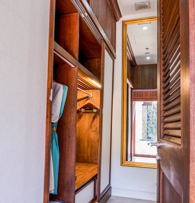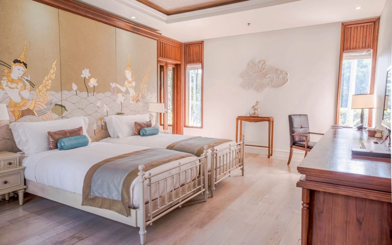 Exquisite Thai and Continental furnishings include fine Thai silk and hand-painted walls. The grand marble staircase to the second floor leads you to a separate living room, separate kitchen/bar, a rooftop sun terrace, a third saltwater pool. The sunset from the deck beside the cascading waterfall pool is dramatic, romantic and mesmerising.