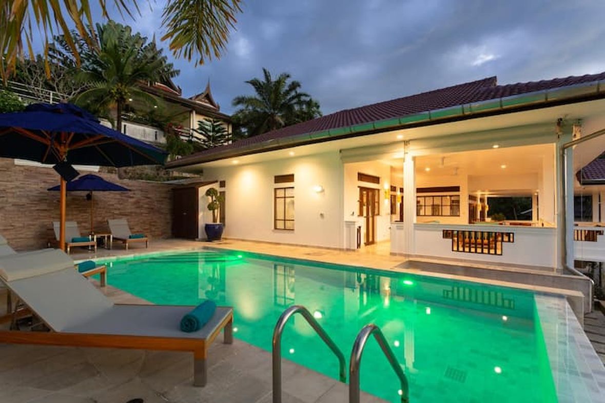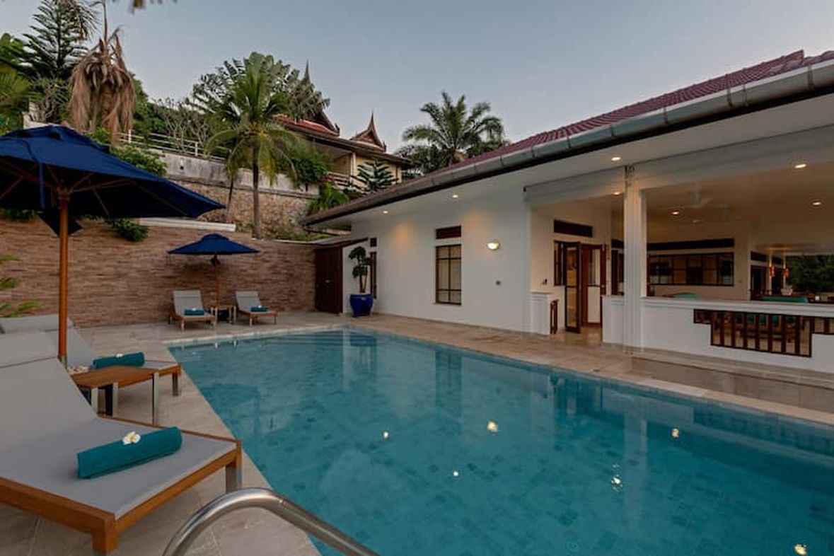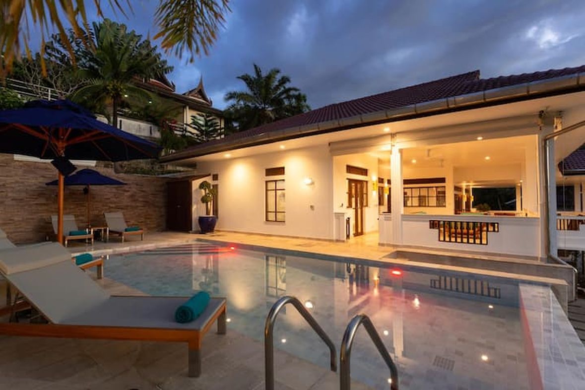 This stand alone detached villa is standing above Kata providing security and privacy inside a secure gated area . The villa has a lot of space outside with large swimming pool and barbeque area .