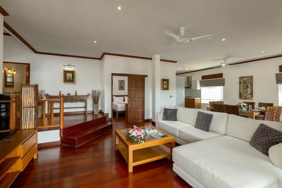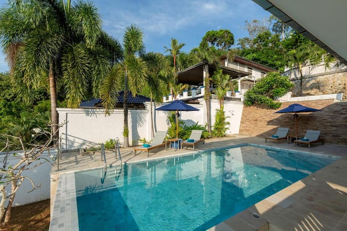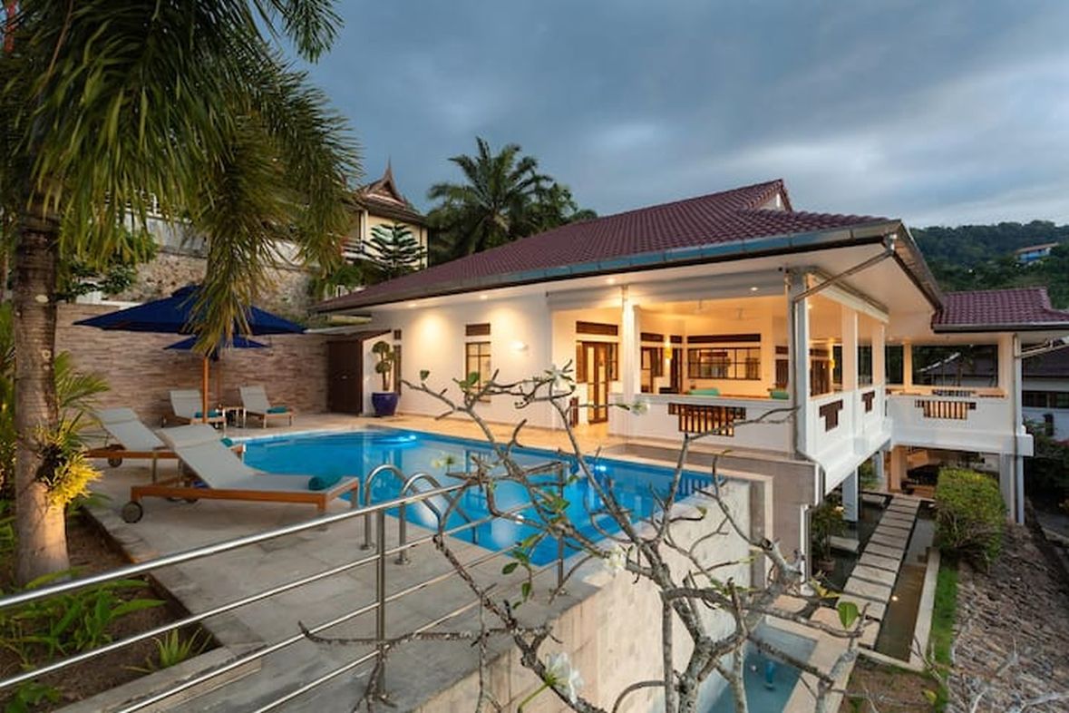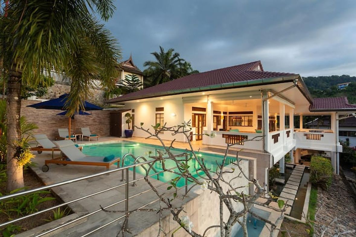 This stand alone detached villa is standing above Kata providing security and privacy inside a secure gated area . The villa has a lot of space outside with large swimming pool and barbeque area .