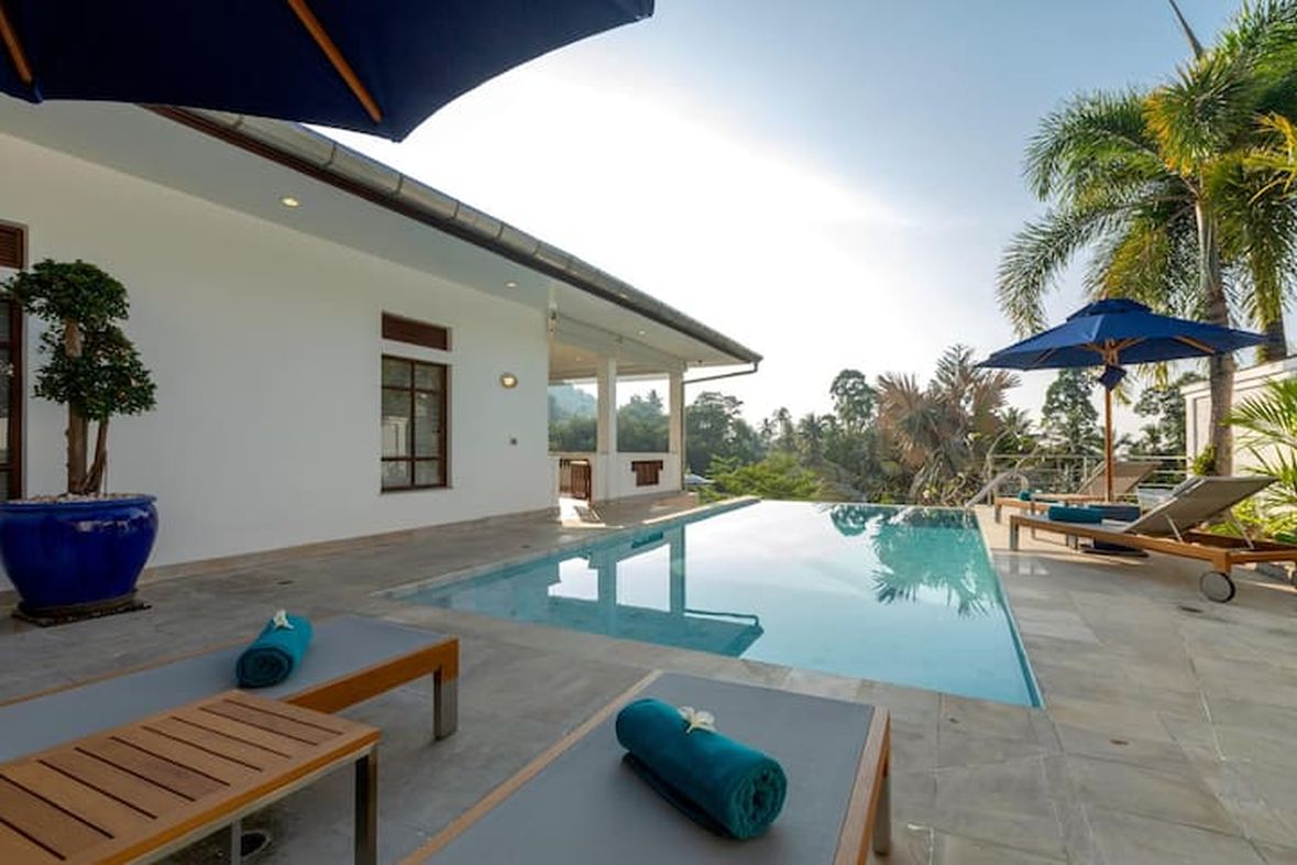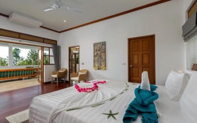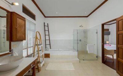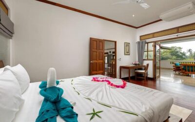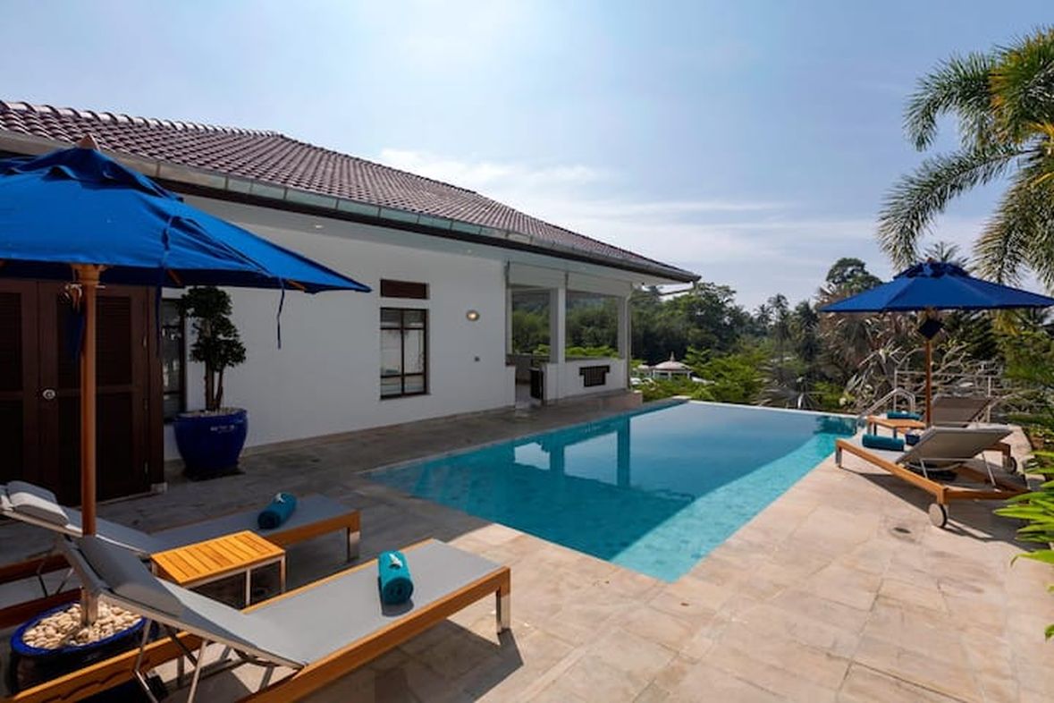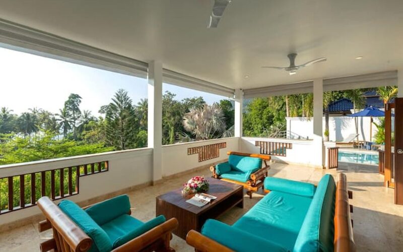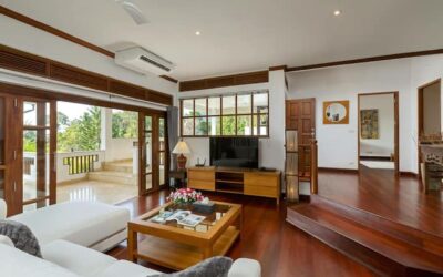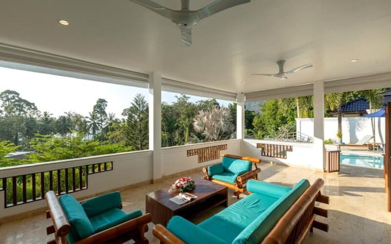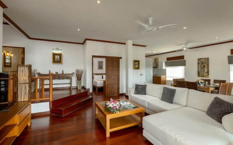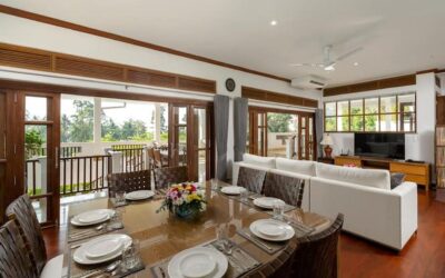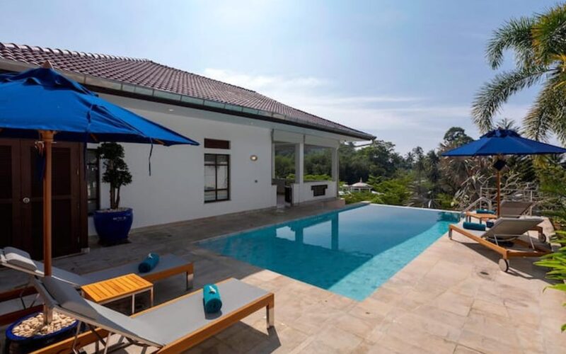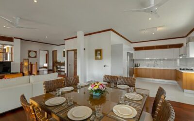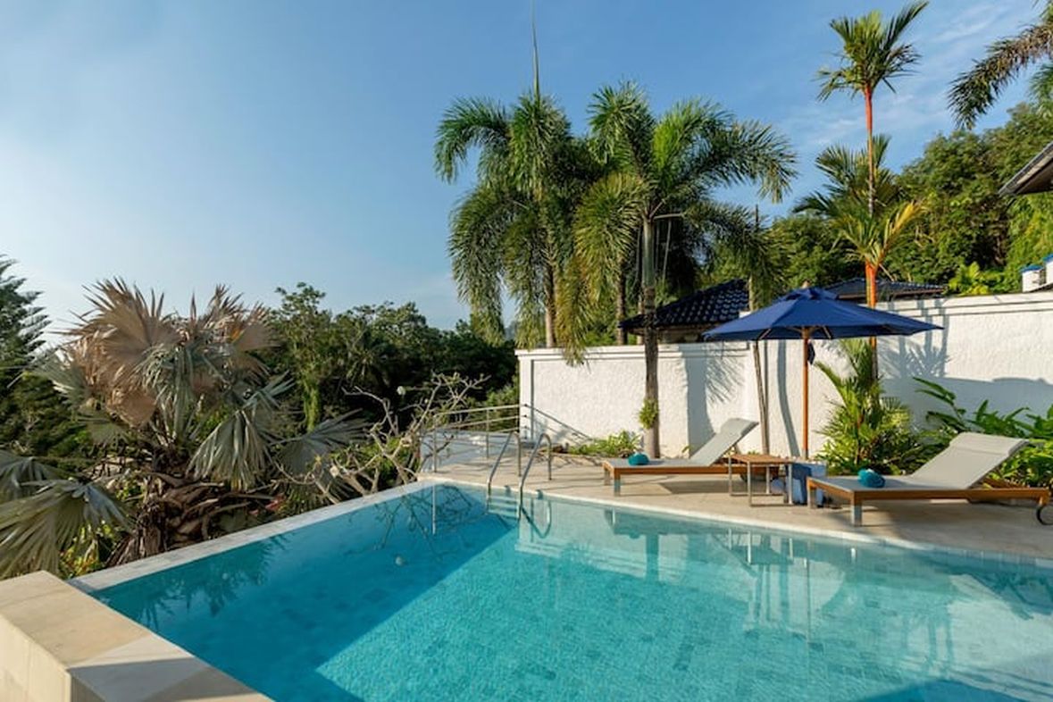 This beautiful three bedroom, three bathroom ensuite villa is in the wonderful location Kata, south of Phuket. The pool deck is sheltered on three sides and screened for privacy.