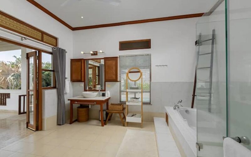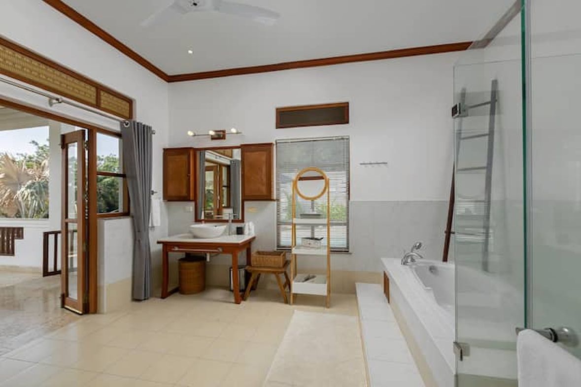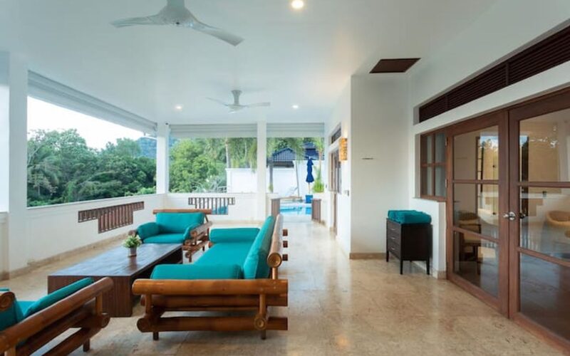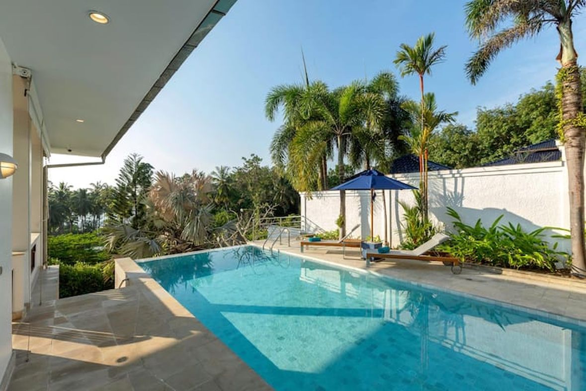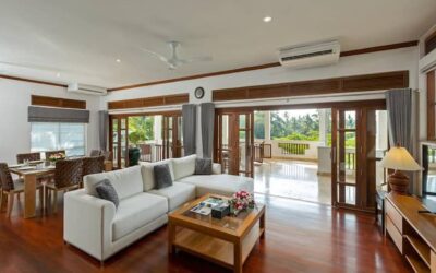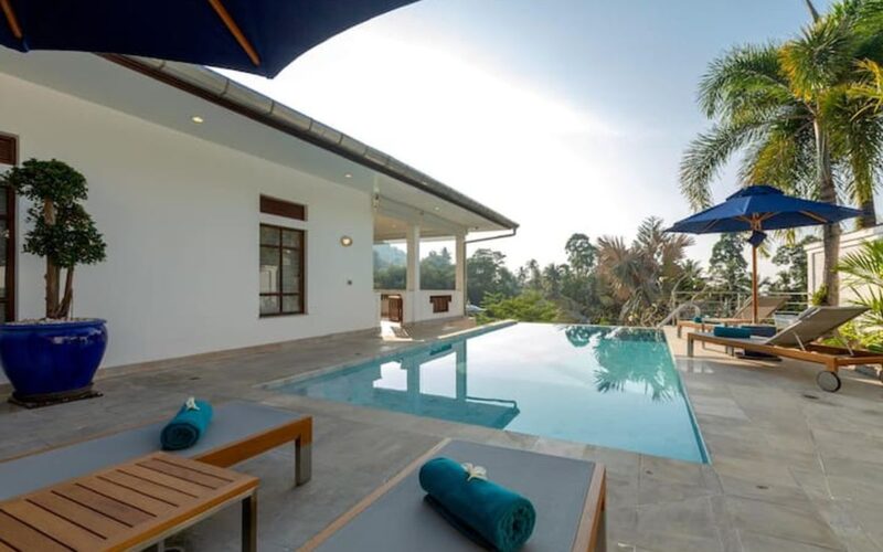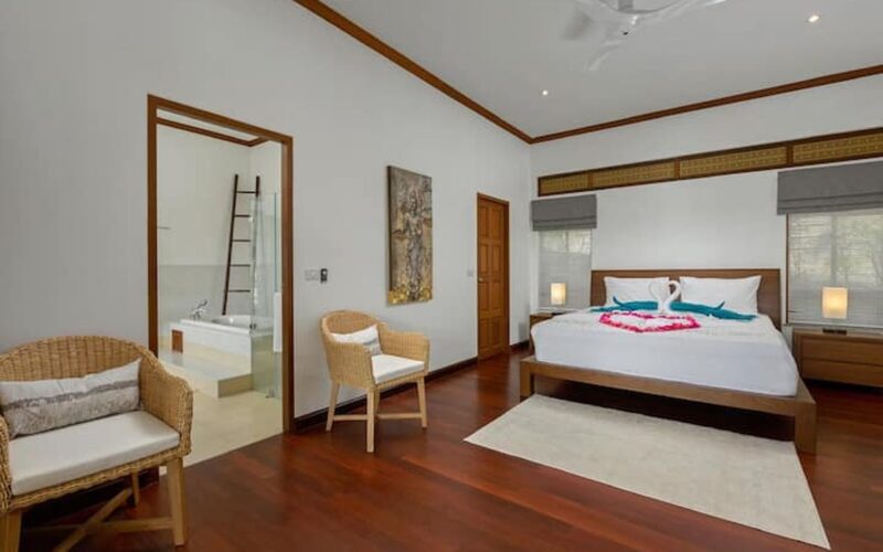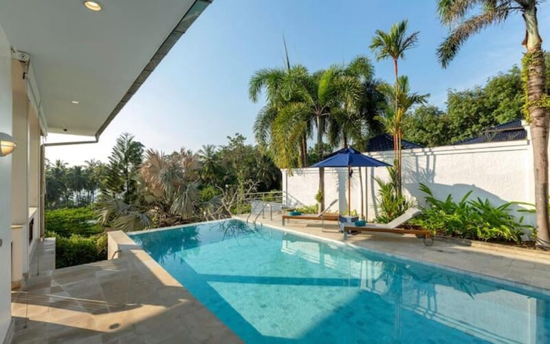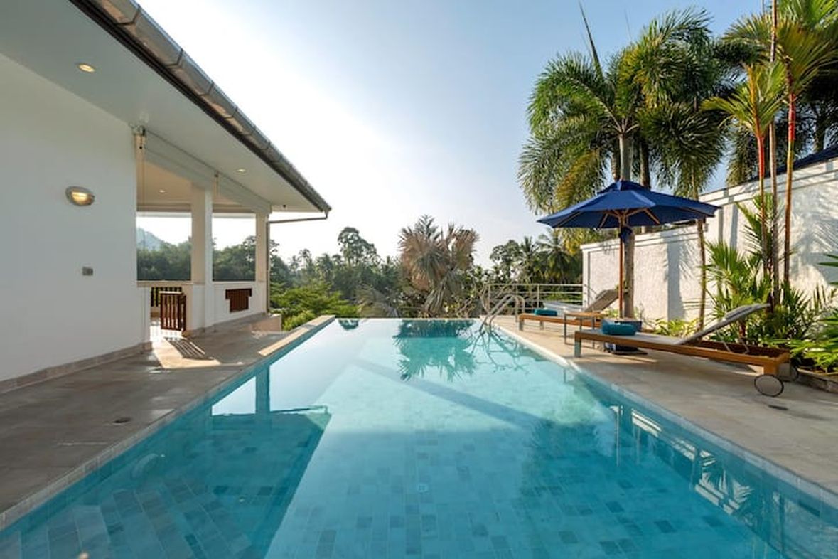 This beautiful three bedroom, three bathroom ensuite villa is in the wonderful location Kata, south of Phuket. The pool deck is sheltered on three sides and screened for privacy.