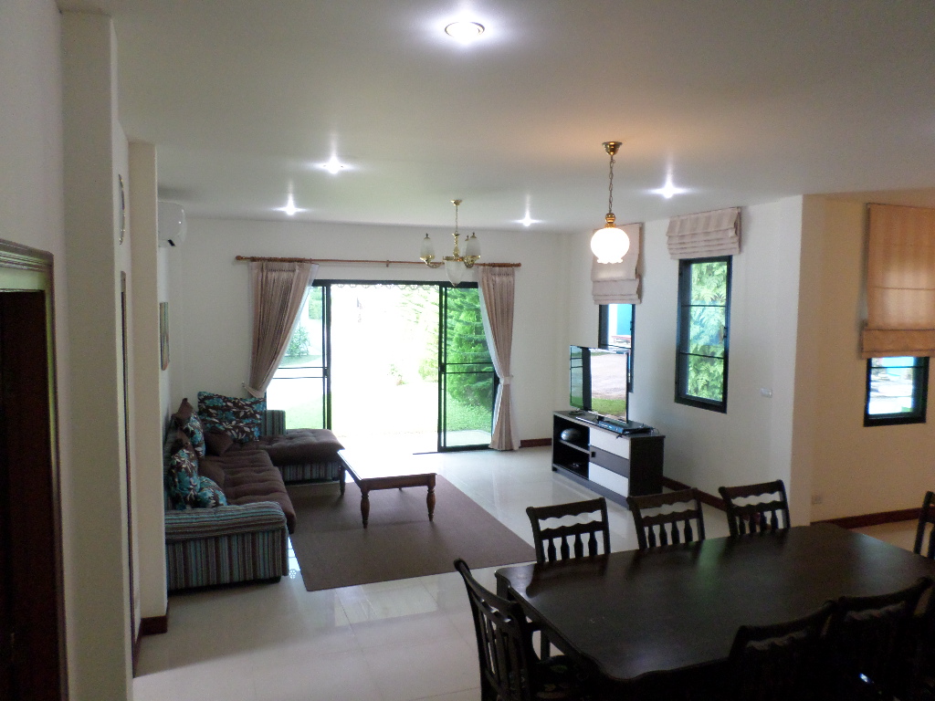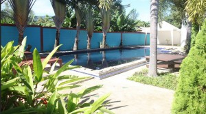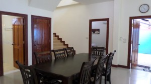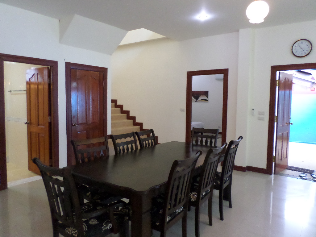 The house belongs in a cute little resort style development consisting of 6 houses . This two storey house comes with dining area , garden , large bathroom and a big common swimming pool . The complex is the perfect place for guests to come and have a fantastic experience and be taken care of by friendly and welcoming hosts.