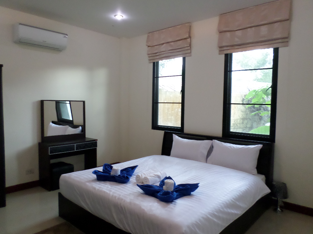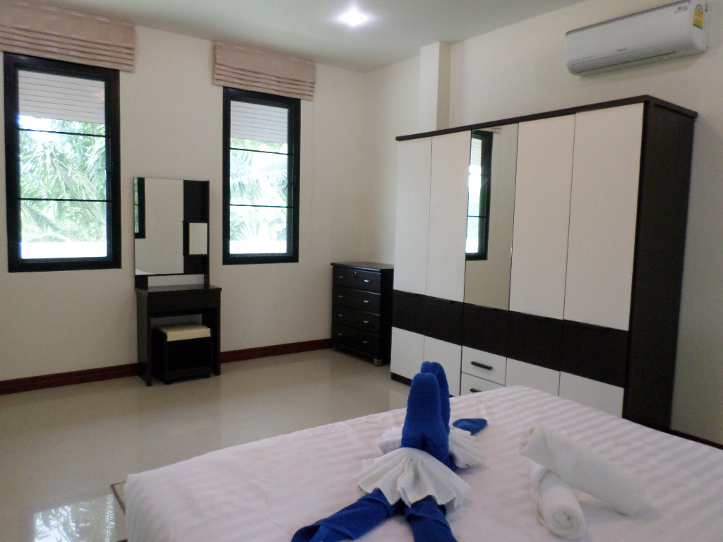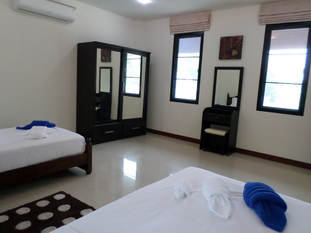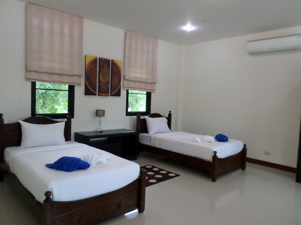 This 4 bedroom house comes with satellite TV, free WI FI and is close to local restaurants, bars and shops for groceries . There is also a fully equipped kitchen so that you can prepare and cook your own food, chefs to come in and cook for you, free WIFI, a shuttle service to the beach each day, entertainment, tours and trip desk, car and bike rent service, in house massage services, Chinese tour guide and help desk and much much more. You will also be given a full introduction to the area and for a detailed overview of the best things to do in Phuket during your vacation. The closest restaurant is 100 meters out of the main gate, rental shops, massage shops etc also just outside of the main gate. Phuket airport is just a 20 minute drive away and the night market and Tesco Lotus 5 minutes by car or bike. We can organize pretty much anything from a simple motorbike, car or even a private driver. Taxi’s are available at very short notice also.
