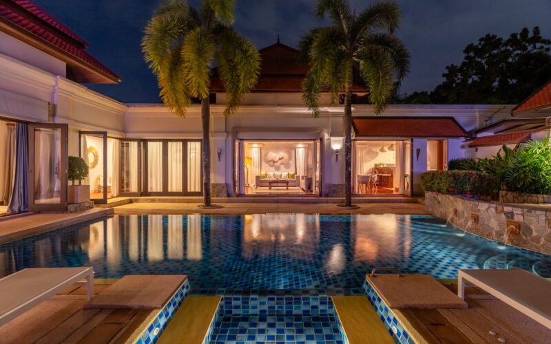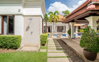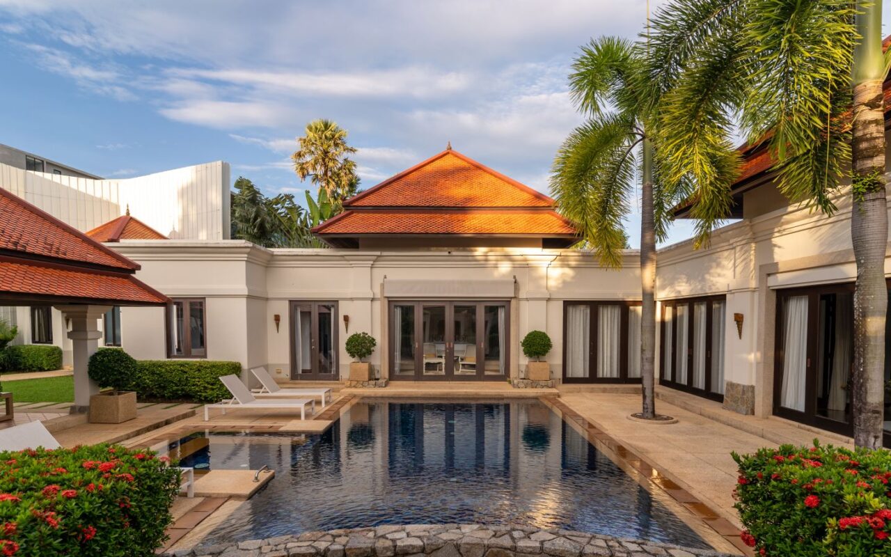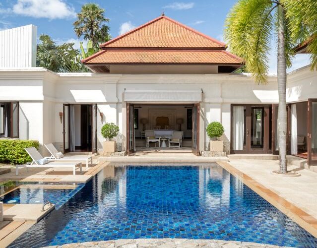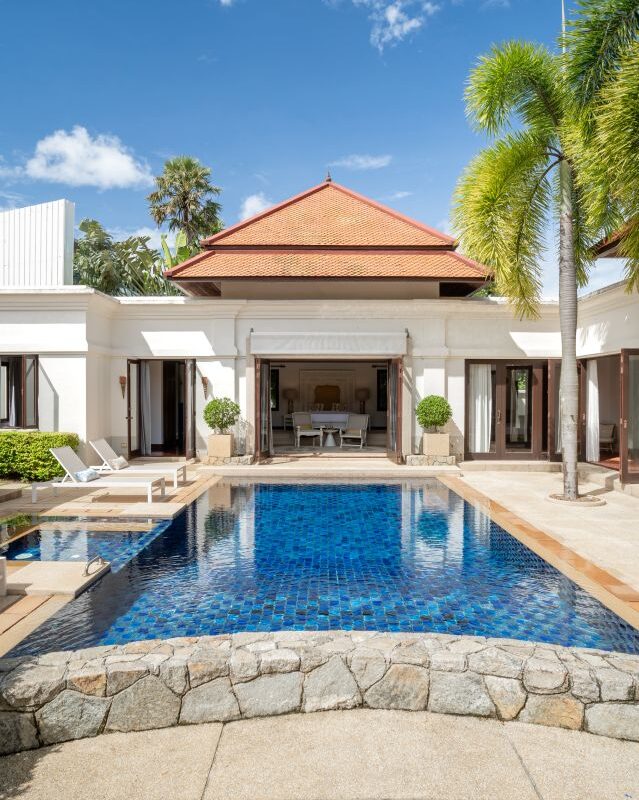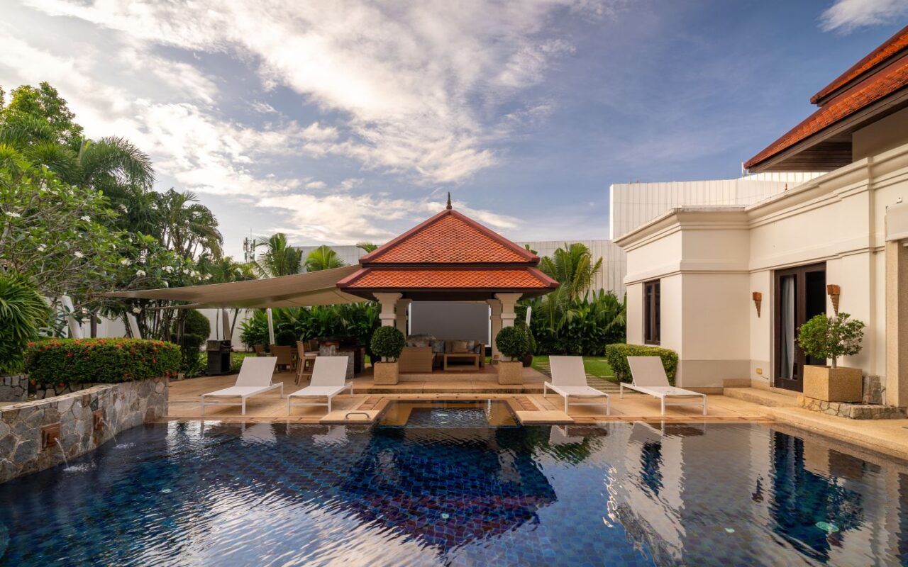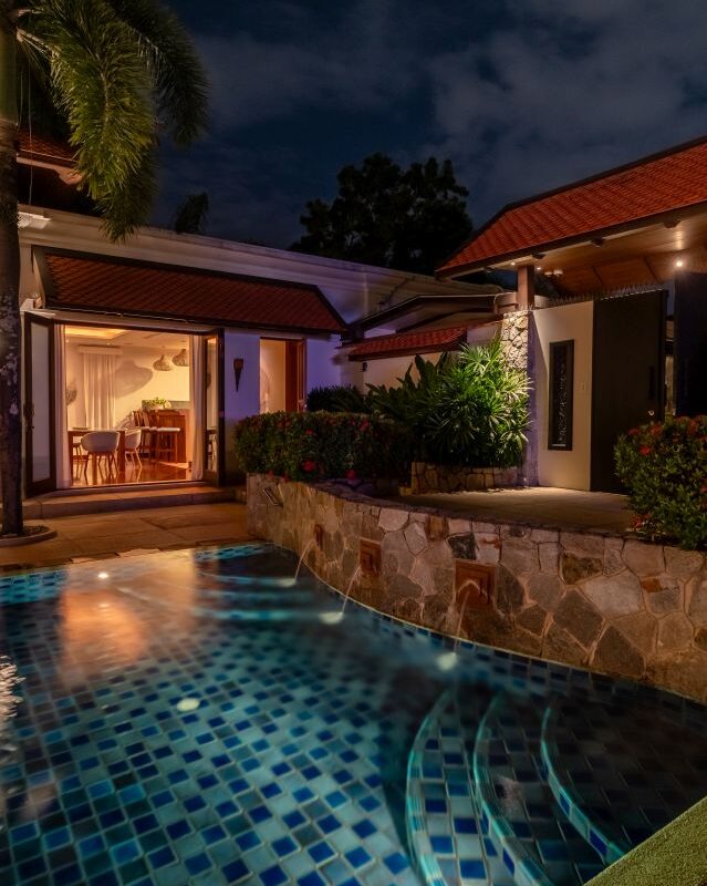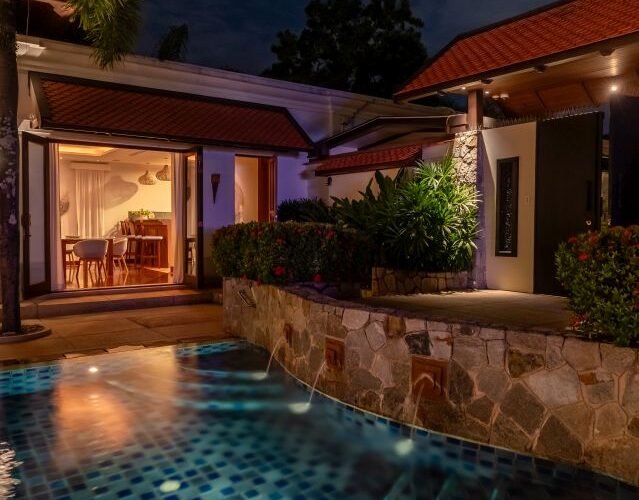 This luxury Bangtao Villa , offers a relaxed beach style retreat, a sanctuary to unwind and soak up the peace and tranquillity of this beautiful Thai hideaway. Gentle breezes waft the fragrance of tropical blossoms through the villa and beckon you outside into the crystal clear pool to swim or laze. Relax in the pool Jacuzzi and feel your stress melt away in the warm Thai sunshine. Drift, barefoot, to the spacious garden Sala deck to relax and chat with your family and friends, or simply rest with an iced drink and a good book! Indulge yourself with a traditional Thai or aromatherapy massage in the villa’s private spa and, at the end of an idyllic day, sink into a luxurious four-poster bed for a deep, restful sleep. Your privacy and comfort is our greatest priority as you make this Villa your luxury home away from home.